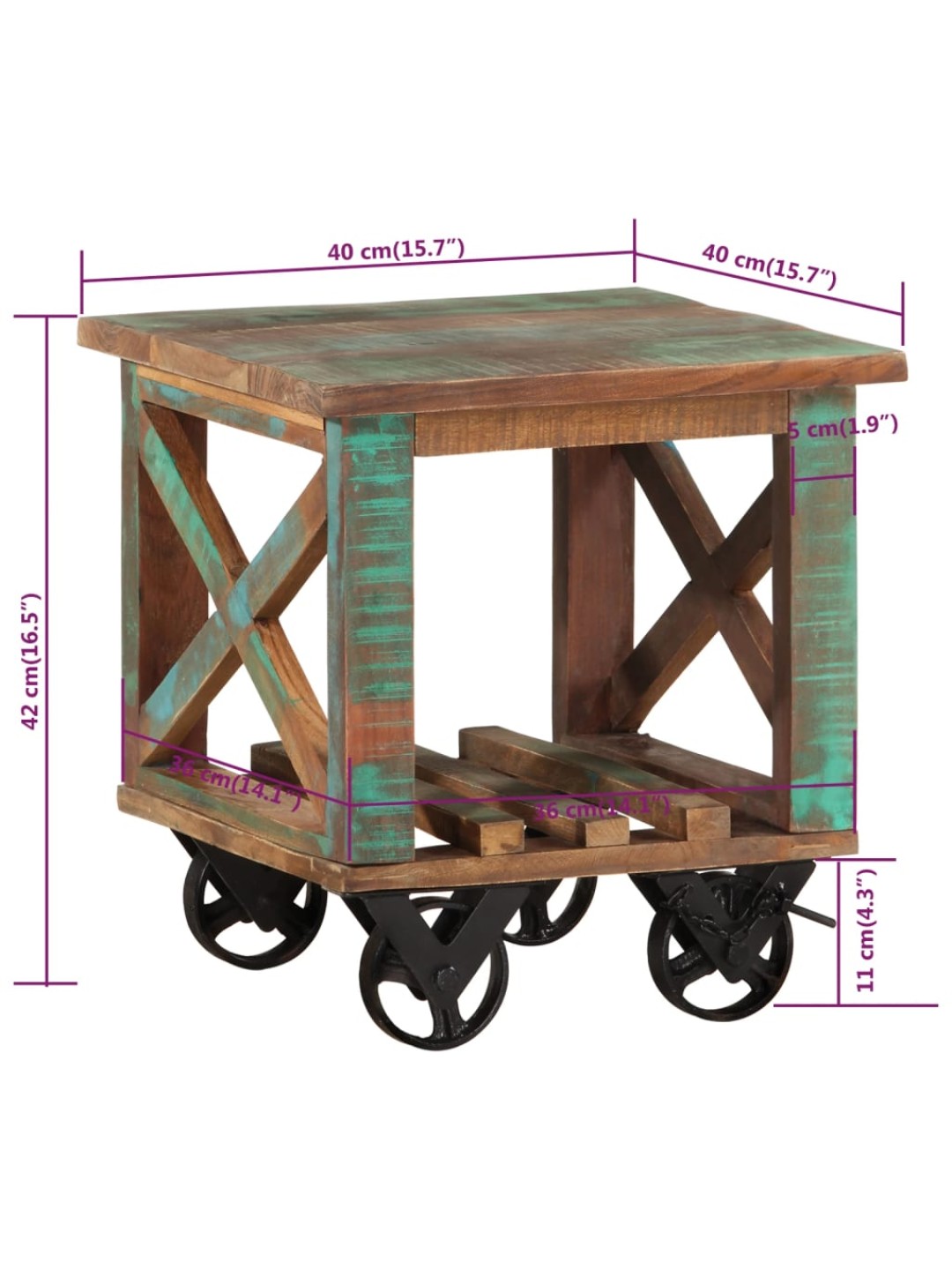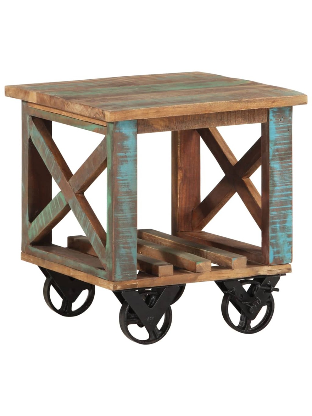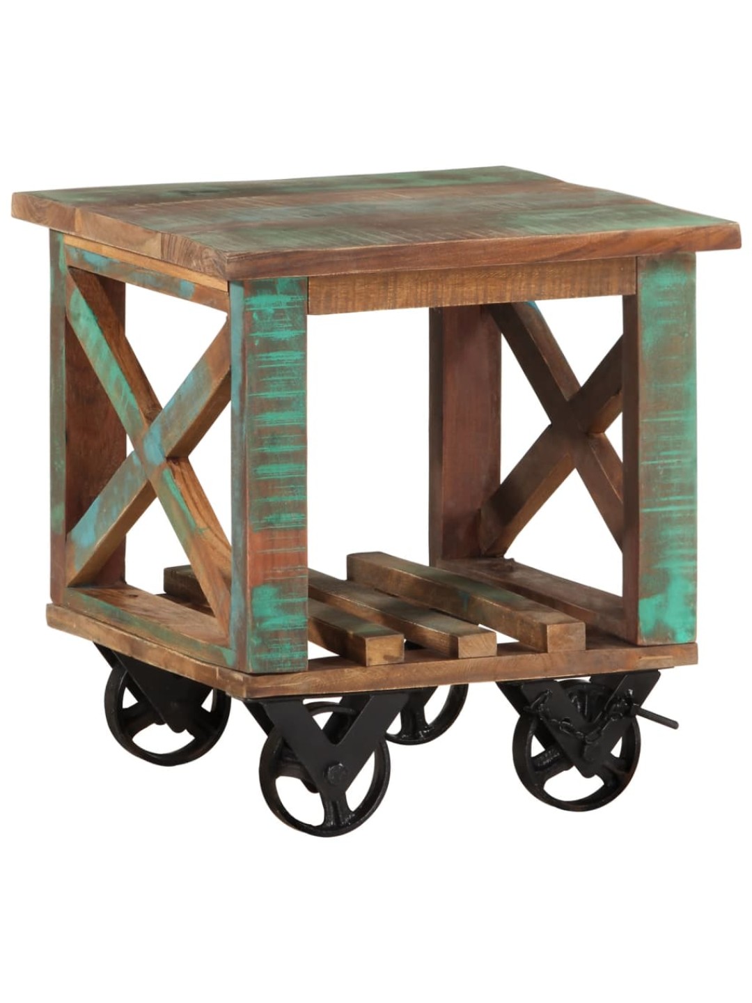 Sivupöytä pyörillä 40x40x42 cm kierrätetty täyspuu