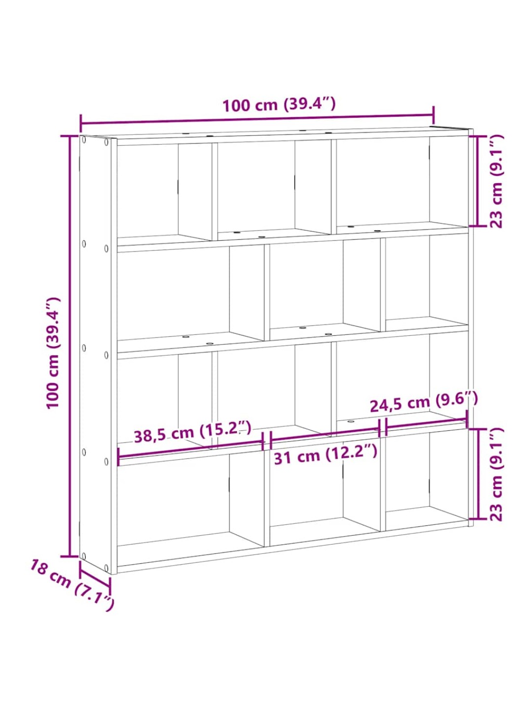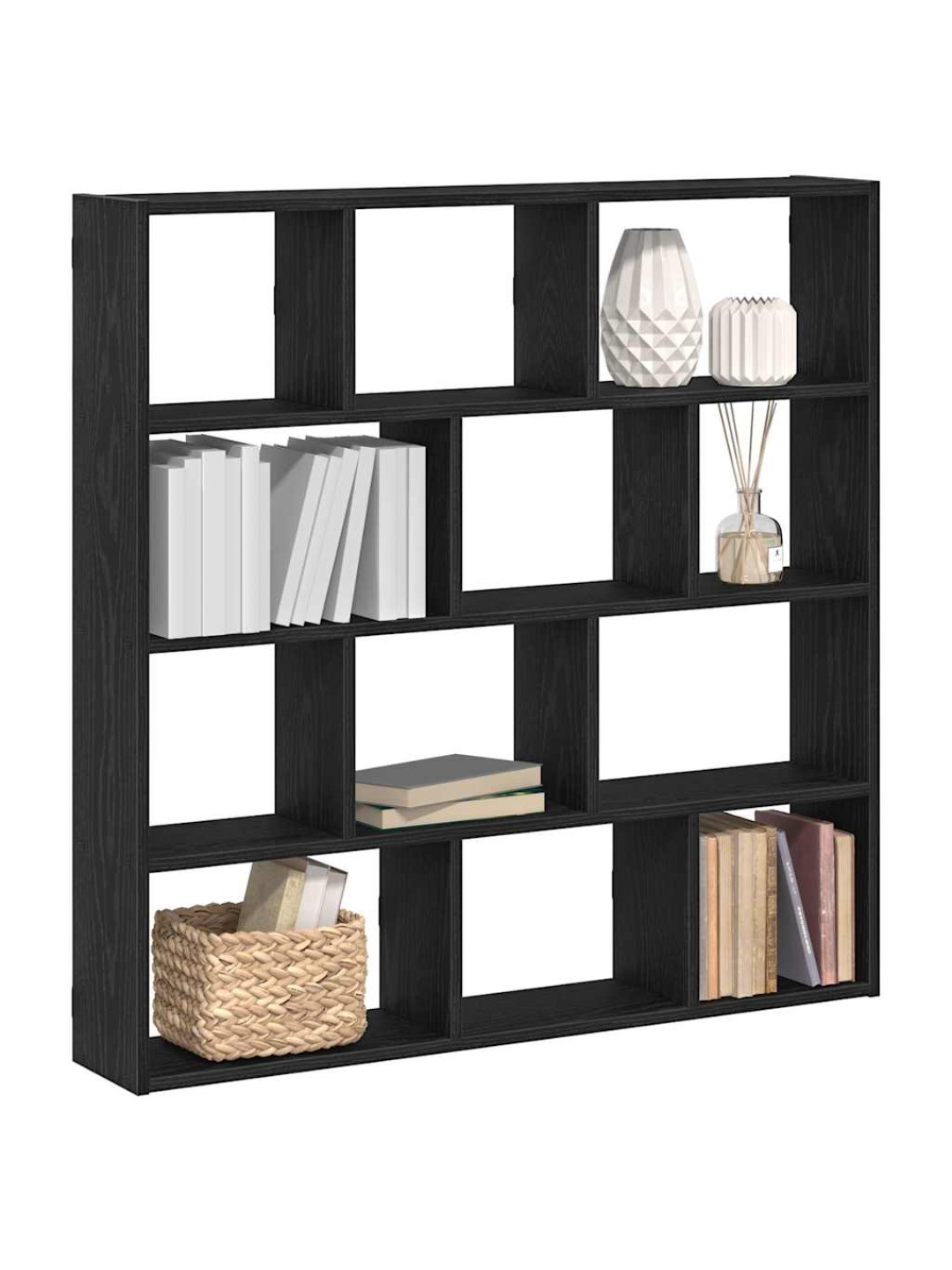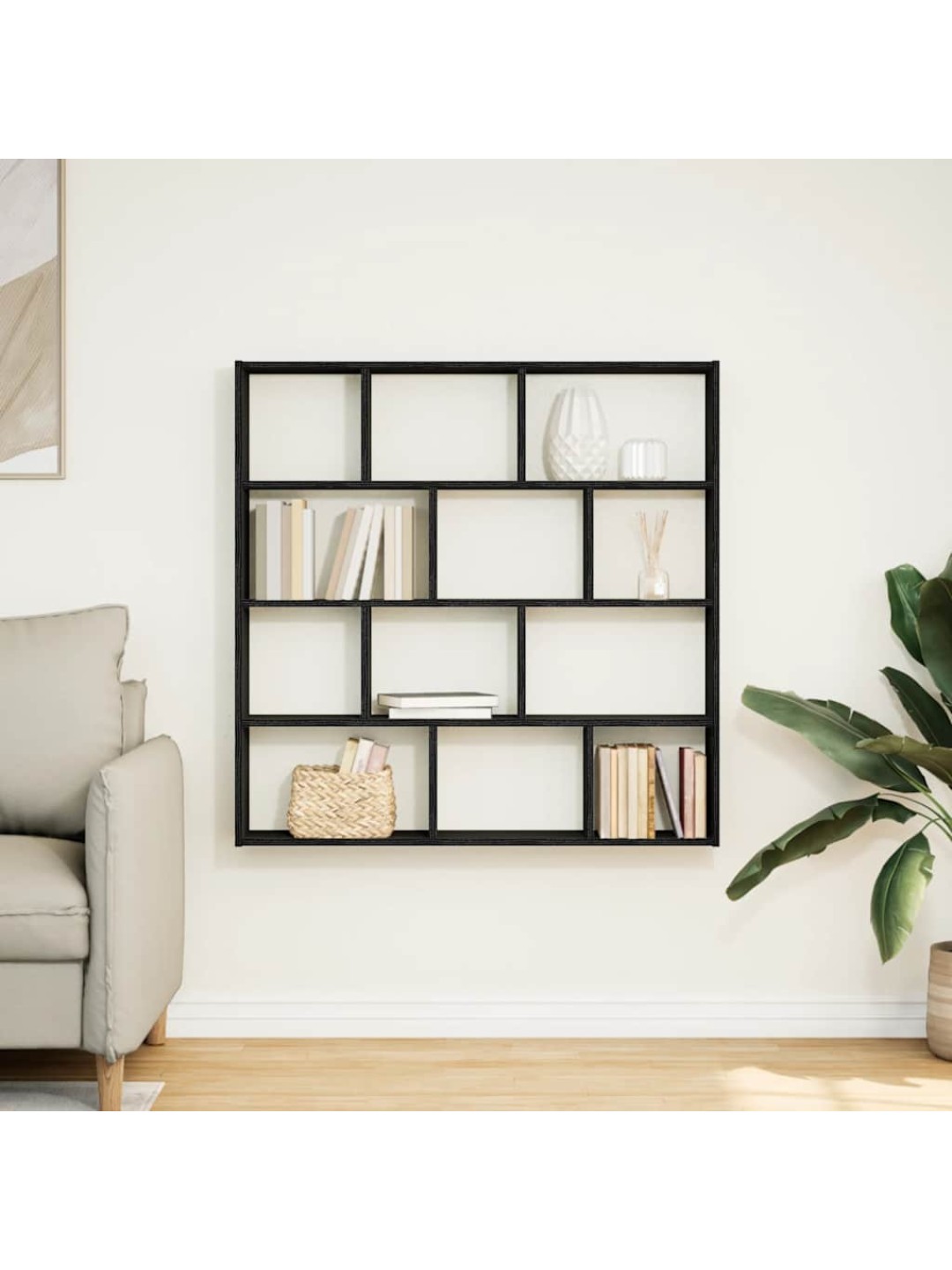Seinäkuutiohylly 12 lokeroa musta tekninen puu