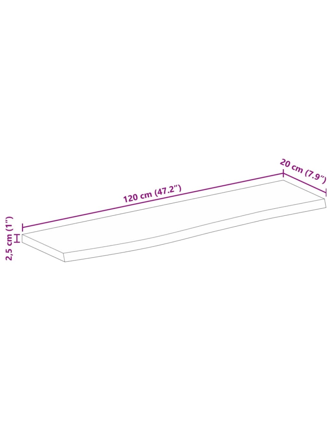 Pöytälevy elävä reuna 120x20x2,5 cm täysi mangopuu