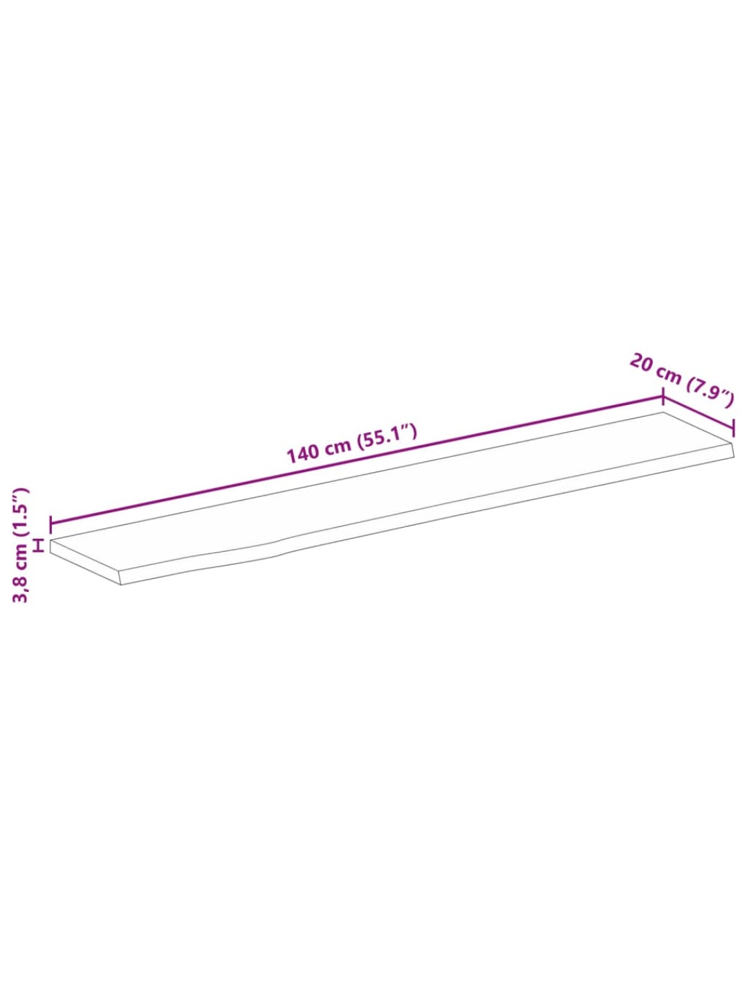 Pöytälevy elävä reuna 140x20x3,8 cm täysi mangopuu