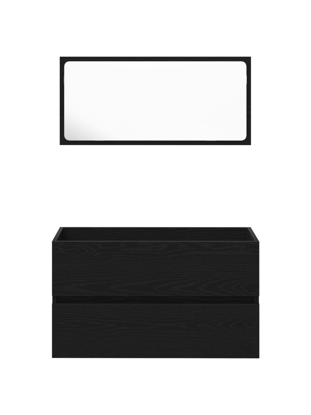 3 osainen kylppärikalustesarja mustasta tammesta.