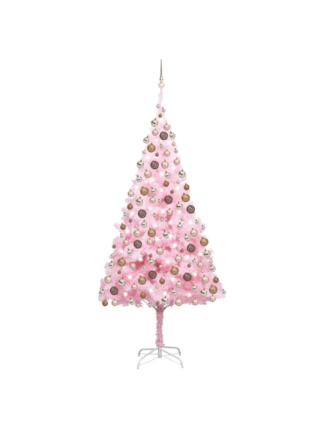 Tekojoulukuusi palloilla esivalaistu pinkki 210 cm pvc