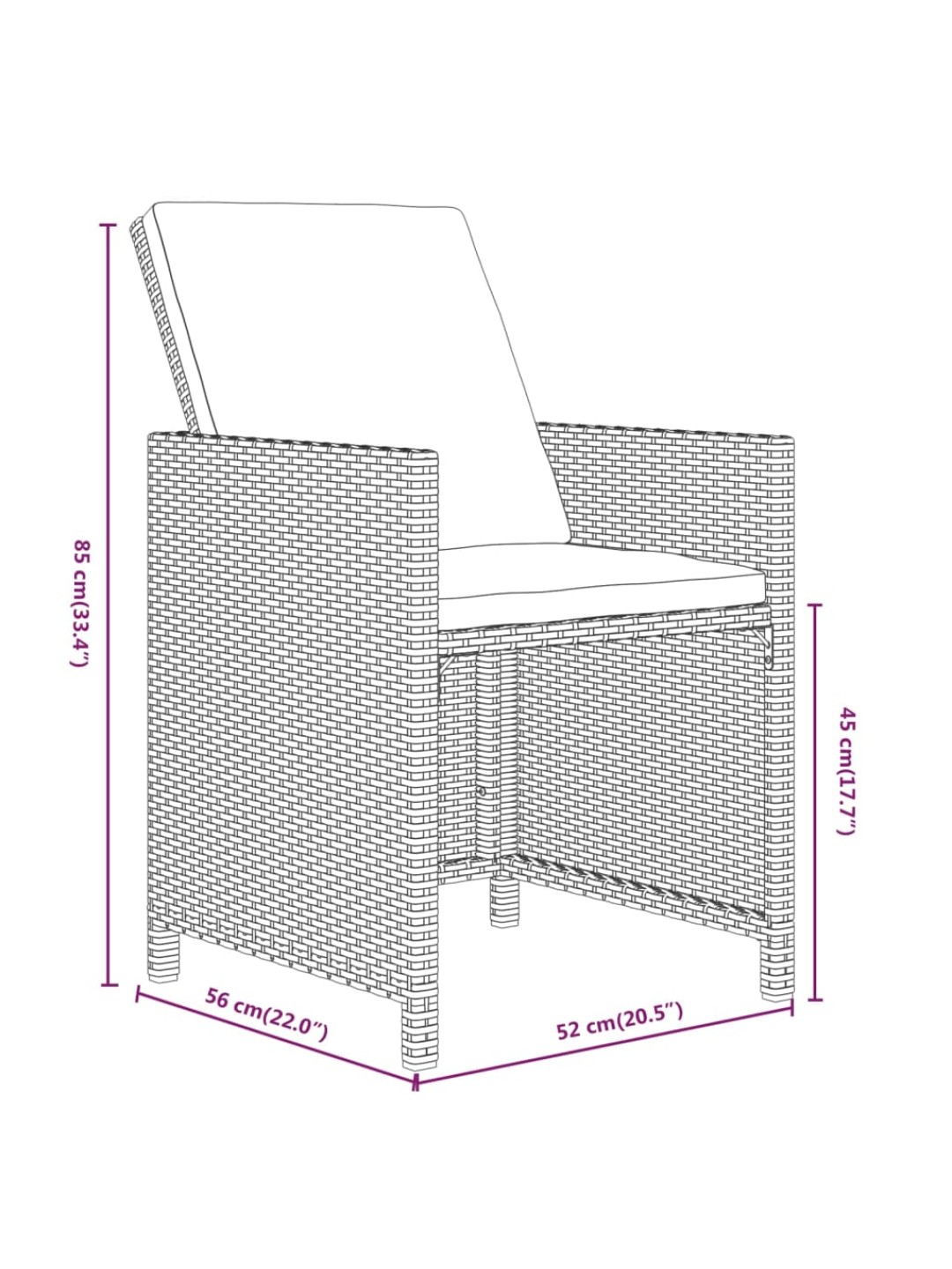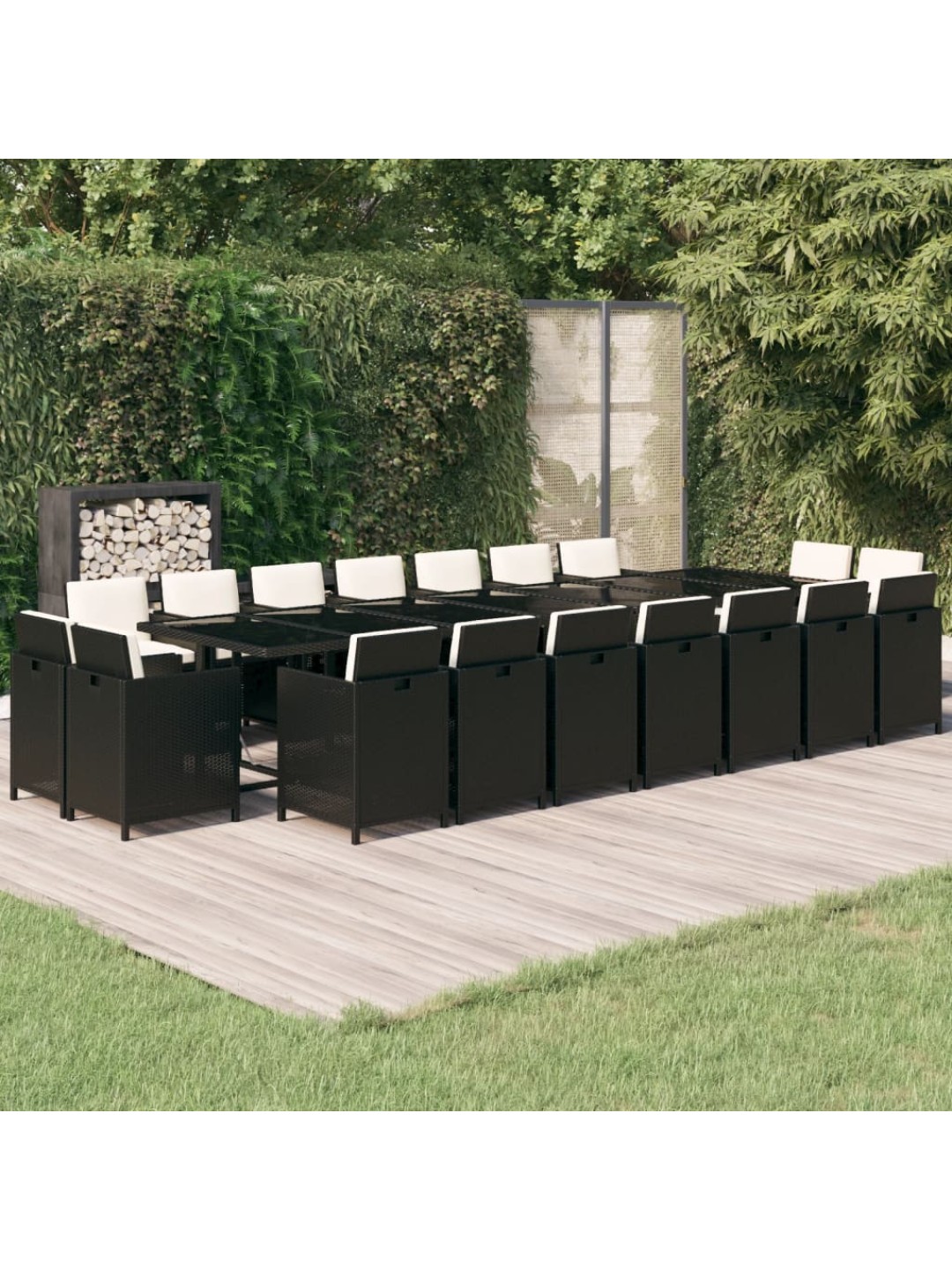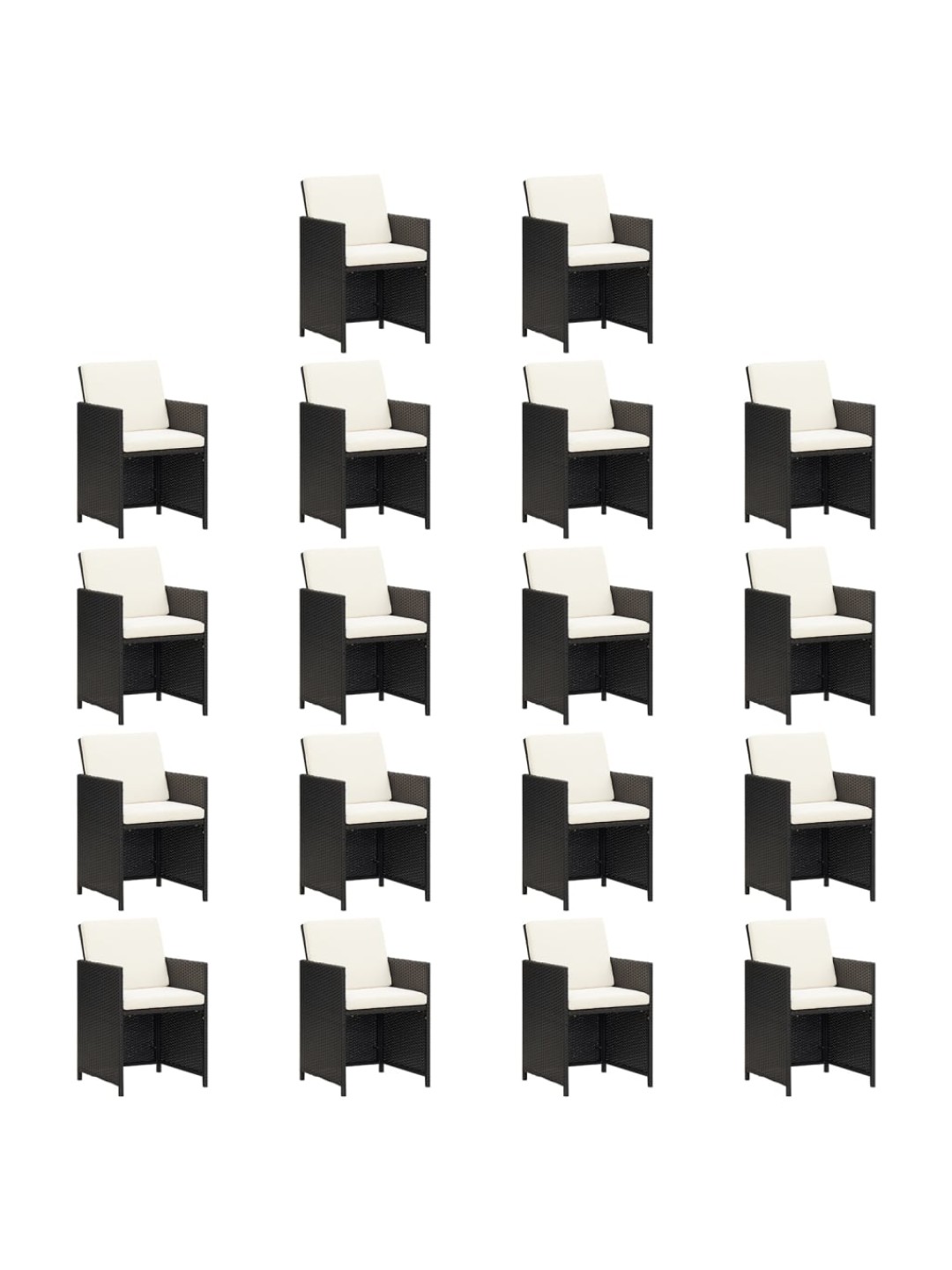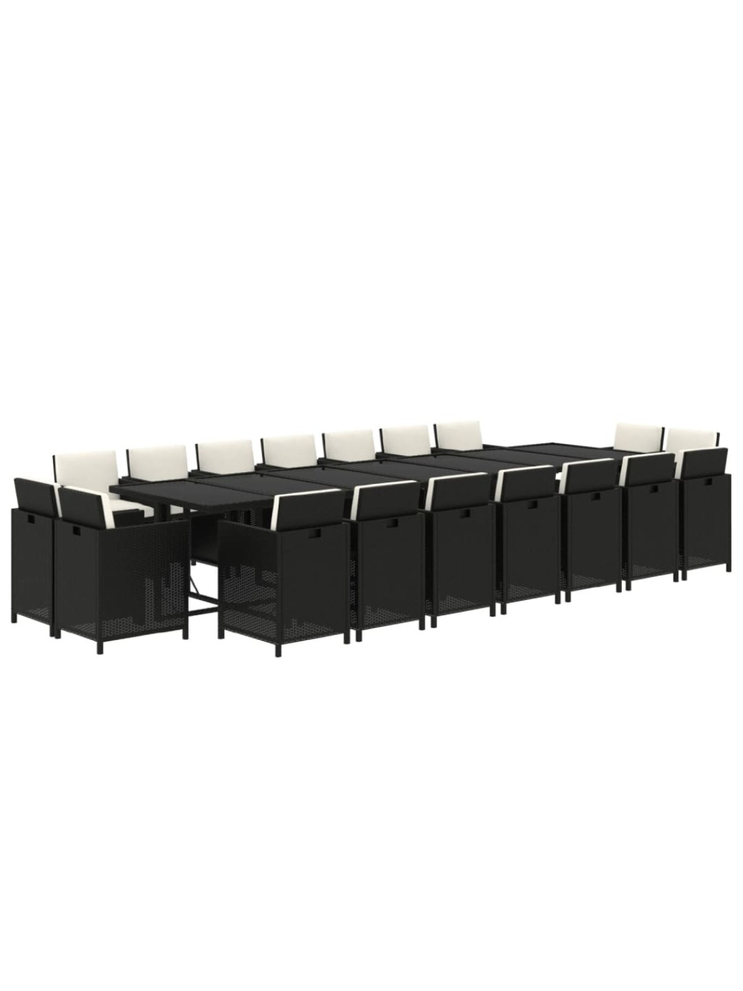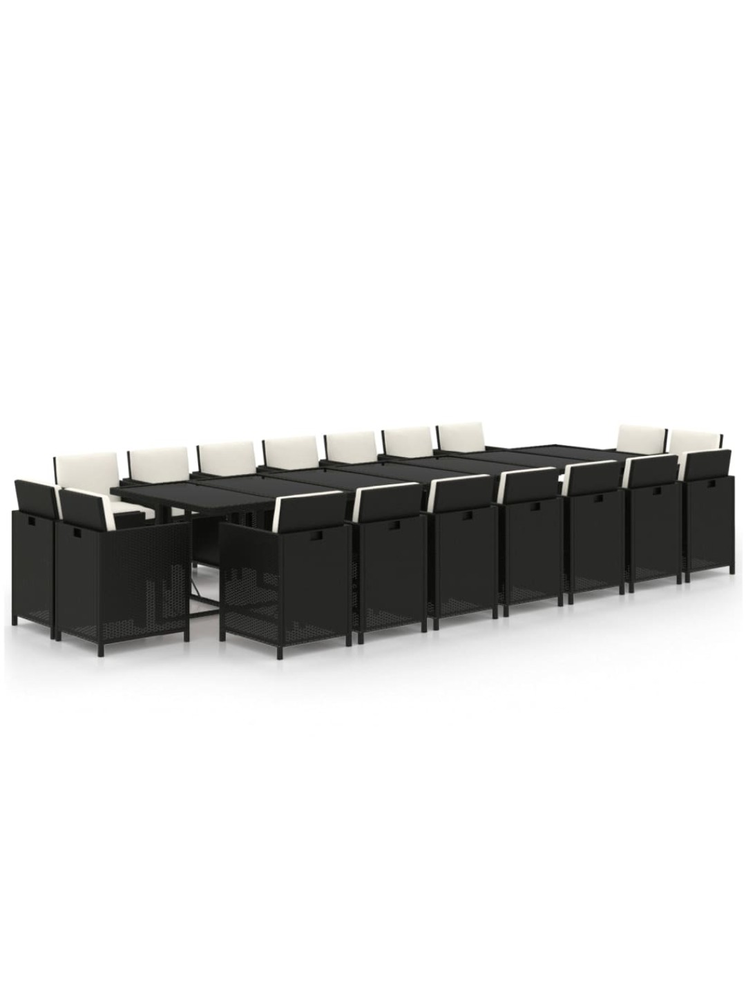 19-osainen ulkoruokailuryhmä tyynyillä polyrottinki musta
